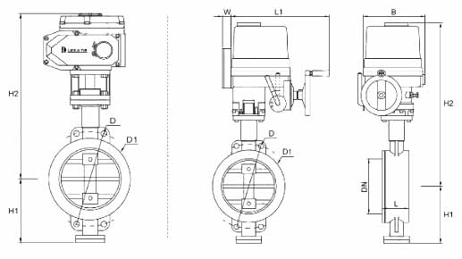 LDBUA系列 電動(dòng)對(duì)夾軟密封蝶閥外觀尺寸: