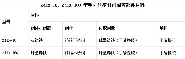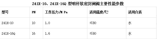 Z41X-16Q 型明桿軟密封閘閥主要外形及結(jié)構(gòu)尺寸(mm) |