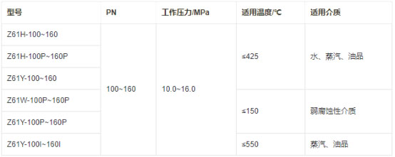 Z61H、Z61Y、Z61W 型 PN100~PN160 承插焊楔式閘閥性能: