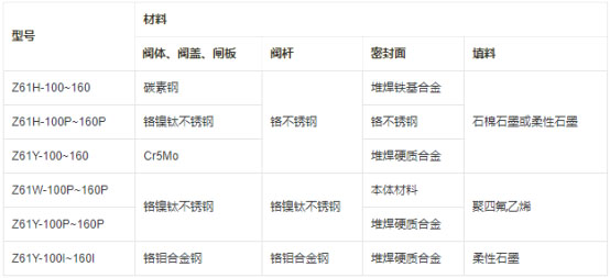 Z61H、Z61Y、Z61W 型 PN100~PN160 承插焊楔式閘閥零部件材料表: