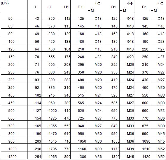 D373W-16P/R/RL不銹鋼蝶閥外觀尺寸: