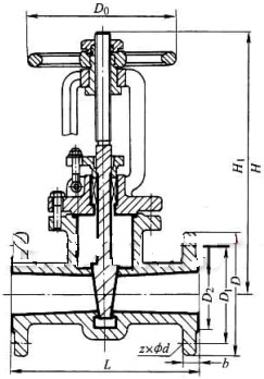 手動(dòng)、法蘭連接、明桿楔式剛性單閘板,閥座密封面材料為聚四氟乙烯,公稱(chēng)壓力 PN16~PN25,閥體材料為灰鑄鐵襯氟塑料的閘閥。