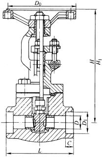 手動、對接焊連接形式、明桿楔式剛性單閘板,閥座密封面材料為硬質(zhì)合金,公稱壓力 PN250~PN320,閥體材料為碳素鋼的高溫高壓電站閘閥。