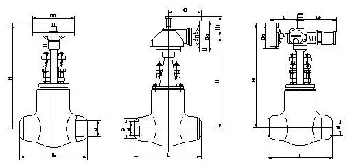 Z941Y-1500LB Z961Y-1500LB美標(biāo)高壓閘閥外觀尺寸: