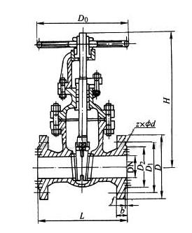 Z41T、Z41W、Z41H 型 PN10~PN40 法蘭連接鐵制明桿閘閥外觀尺寸: