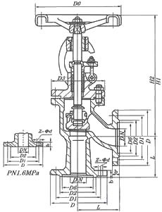 J44H/Y/W型角式截止閥外觀尺寸: