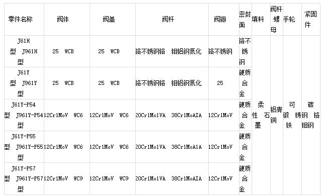 J561Y高壓截止閥零部件材料表: