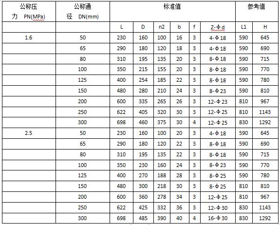 公稱壓力 Nominal pressure: PN1.6~16MPa