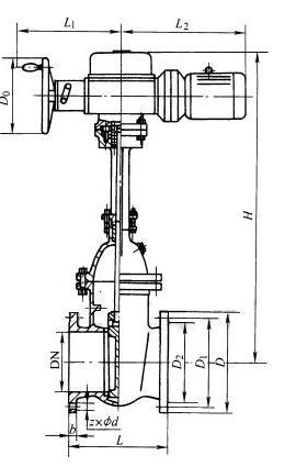Z941T、Z941W、Z941H 型 PN10、PN16 鐵制電動楔式閘閥外觀尺寸: