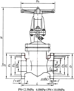 DKZ41H、DKZ41Y 型 PN10~PN100 鋼制真空閘閥外觀尺寸: